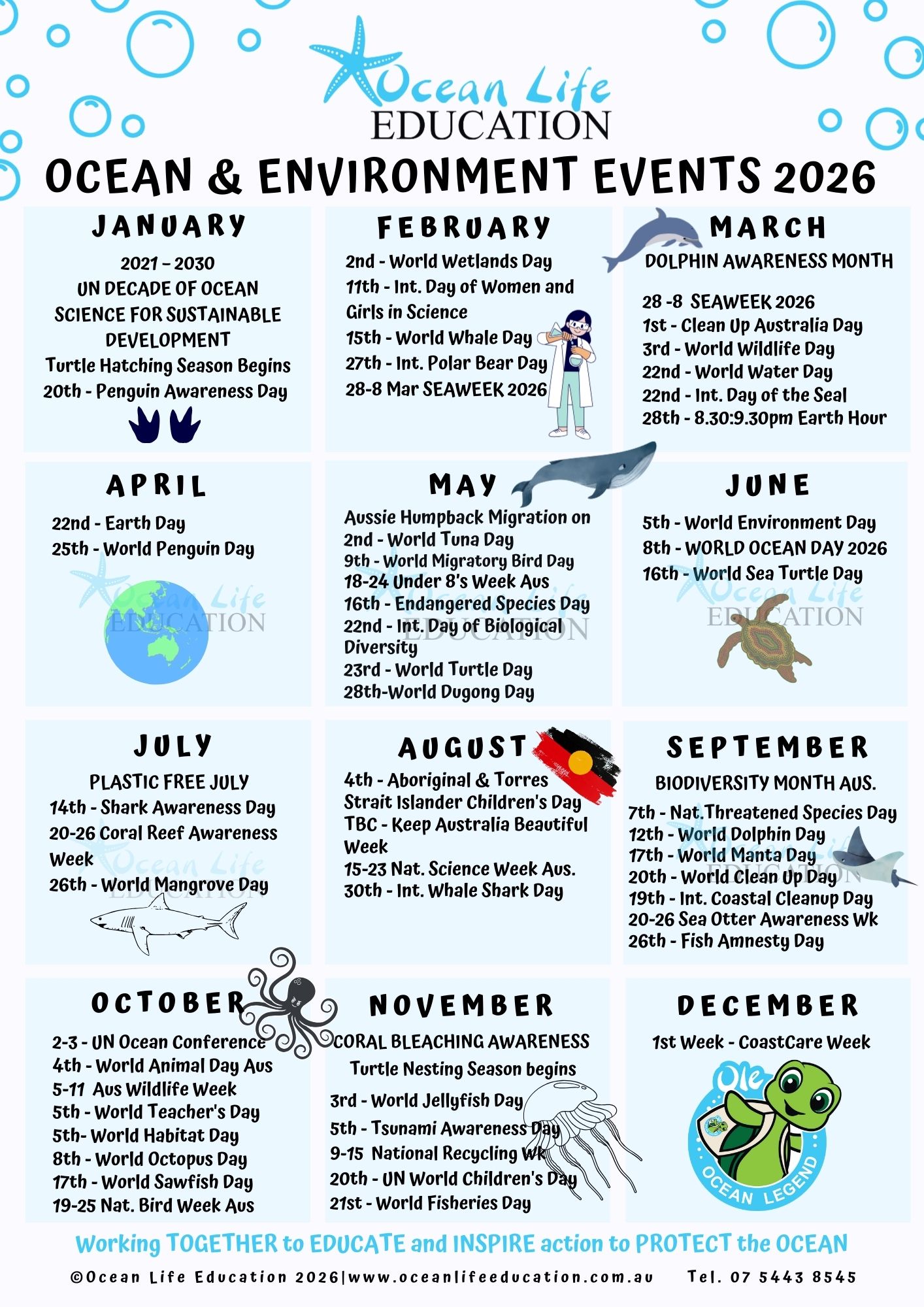 In addition to these, there are a host of other special dates that focus efforts on particular marine animals, habitats or causes. Check out our FREE Annual Ocean Events Calendar for the full list – print your copy here.