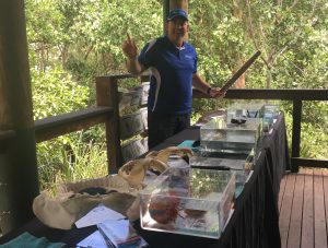 The animals we bring are blue linckia seastars, thorny seastars, black sea cucumber, tropical sea cucumber, sea urchins, fresh water turtle and Bob the baby bamboo shark.