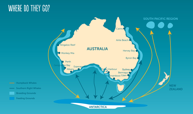 The whales firstly migrate north up the East Coast, then can be seen migrating back south from September to November. This is the best time to see the humpback whale migration as they often have calves and swim close to the shore in order to protect the calves from predators.